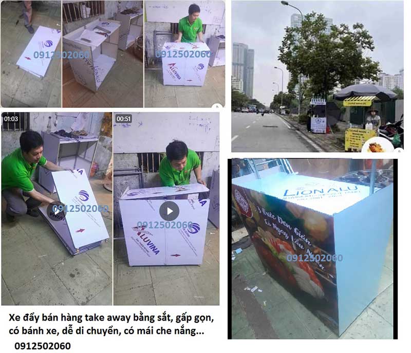 | xe đẩy bán hàng take away tại tphcm, gấp gọn, có bánh xe, có mái che…. | Cái/ngày | 300.000 | Cho thuê |